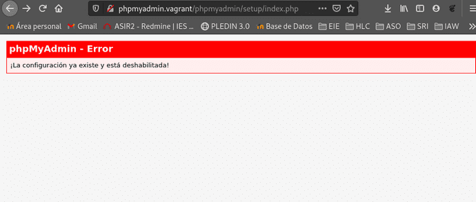 Justo lo que pretendíamos, bloqueamos el configurador, pero phpMyAdmin funciona perfectamente con los valores por defecto.
